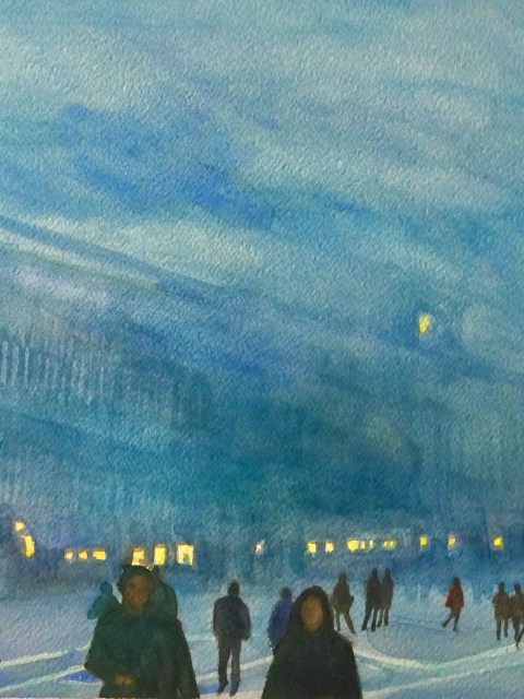 Mentre la musica si espande, le visioni a pastello di Carolina Italiani emergono dal buio dello schermo come memorie luminose: pastelli stesi a volte con le dita. che respirano insieme al suono, trame di colore che nascono e si dissolvono seguendo il ritmo invisibile della città.