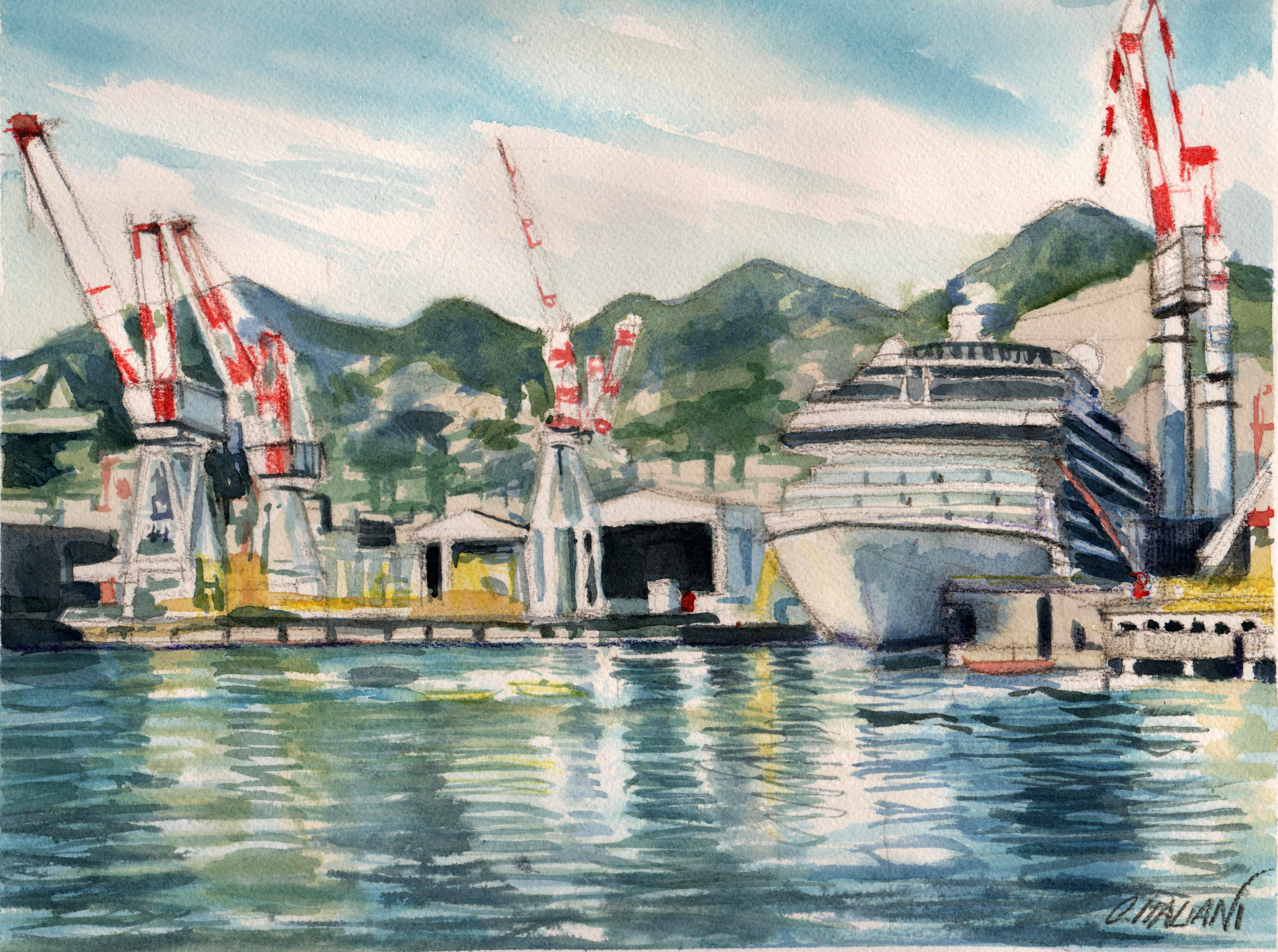 16.Cantieri Navali di Sestri -acquerello su carta