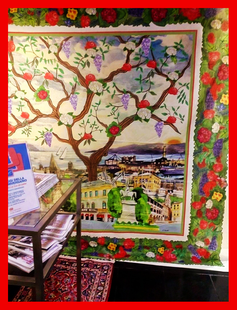 Nei punti vendita di Giglio Bagnara in Via Sestri 46 e al Lux in Via XX Settembre è disponibile il Mezzaro Genovese ” Portu de Zena”, in cotone 270 x 270 , in versione elegante foulard in seta e in strofinaccio di cotone per la cucina. Realizzato da me per celebrare i 150 anni dell’Azienda.