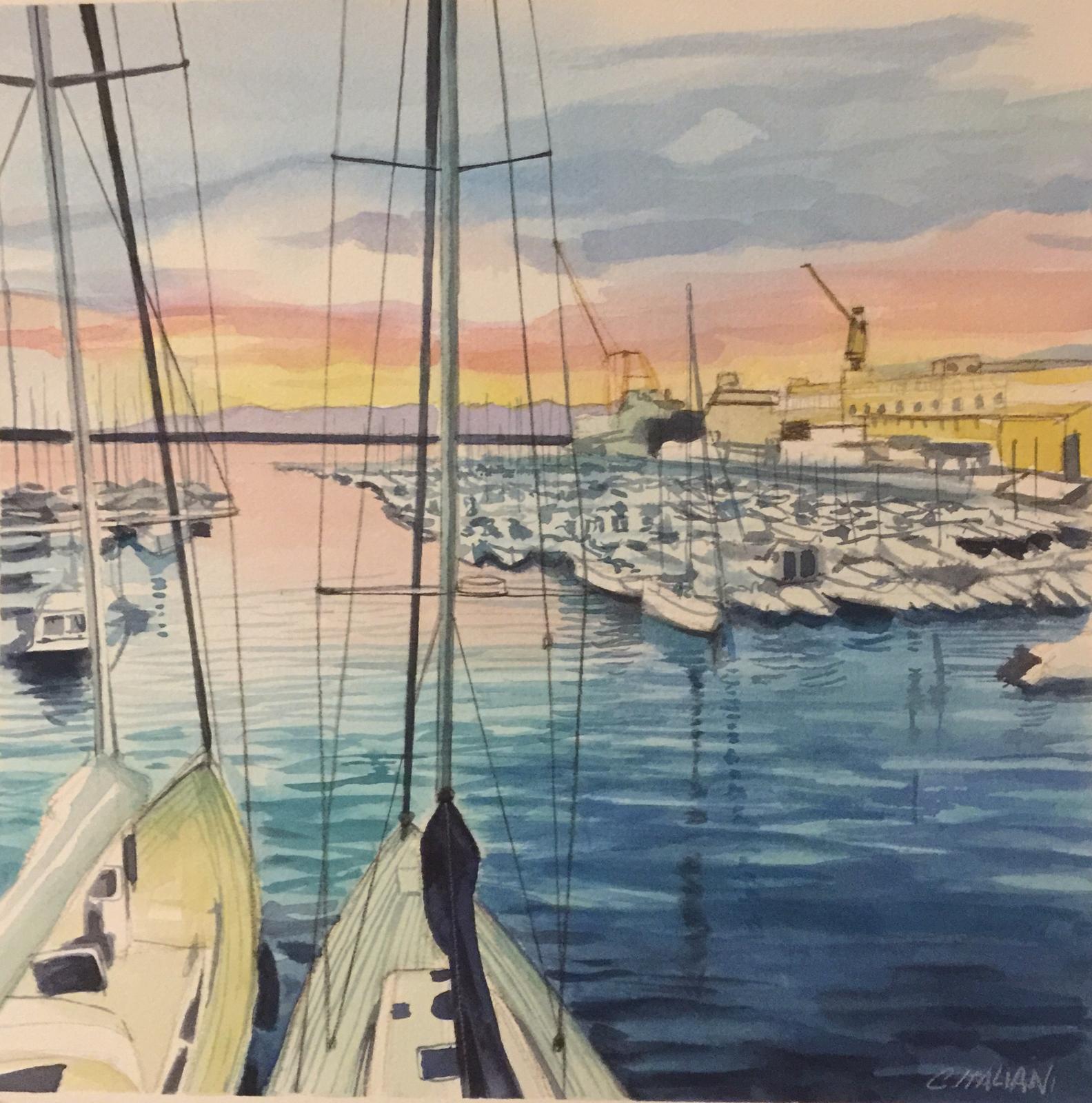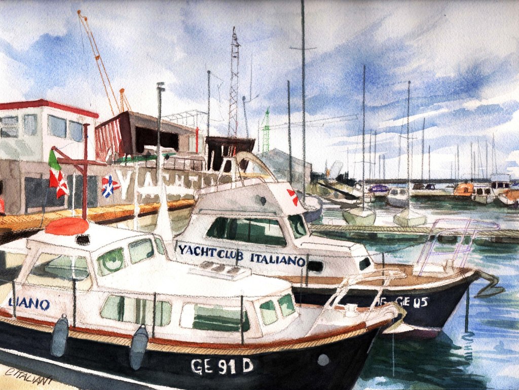 ” Tramonto sul Porticciolo Duca degli Abruzzi “Acquerello 30 x 30 cm ,2018“Sede YCI” Acquerello 30 x 30 cm ,2018“Porticciolo Duca degli Abruzzi , acquerello su carta Fabriano 20 x 30 cm 2017“la pilotina dello Yci”acquerello su carta Arches”30x40cmPorticciolo Duca degli Abruzzi “In regata”olio e acrilico su carta intelata 60 per 90 cm 2014Yacht “Stiamo arrivando in cordata ,” acquerello su carta Arches 20 x 30 cm 2017