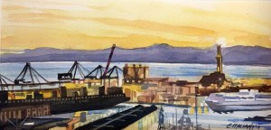 Porto di Genova veduta rettangolare 30 x 40 cm 2019